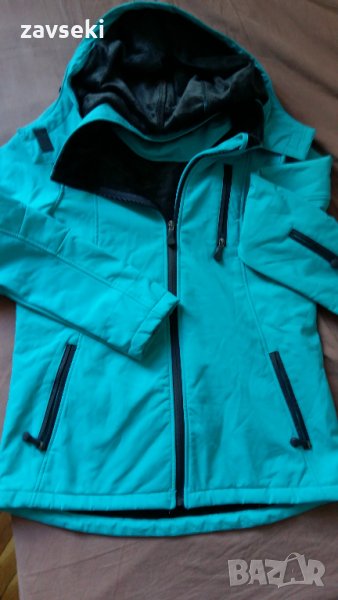 1.Синьо спортно яке с плюшена качулка от вътрешната страна. Вятъроустройчиво е, подхощо за спорт или планина през студените дни. Джобовете са с ципове. Размер М, цена - 30 лв.