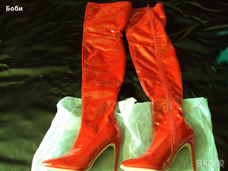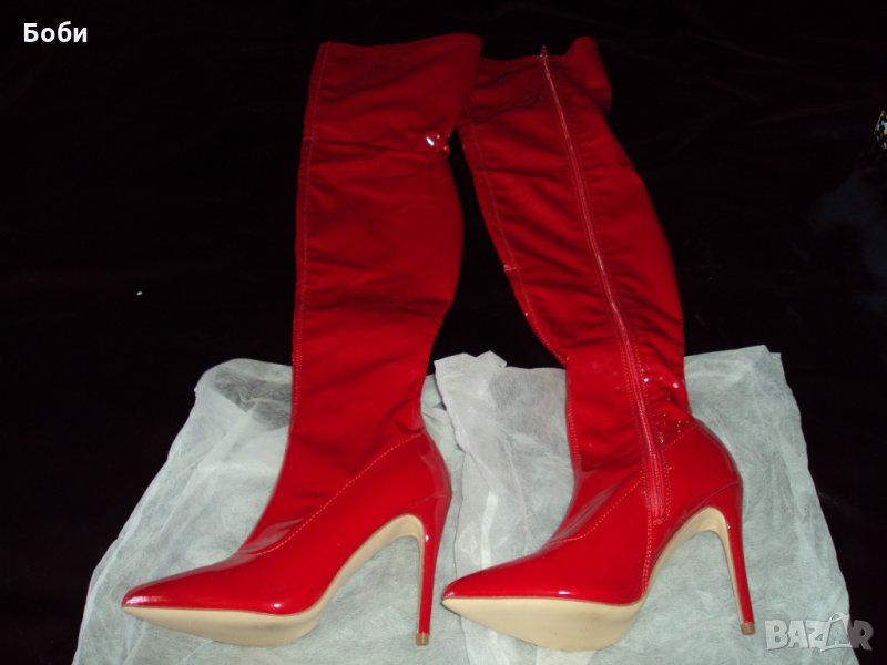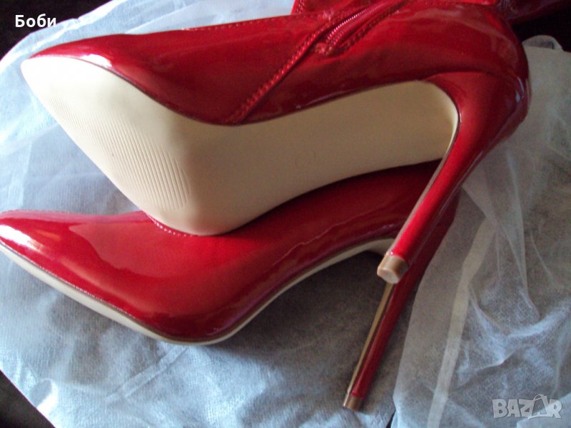 Продавам червени лачени ботуши с ток 12см → Обява 29928827