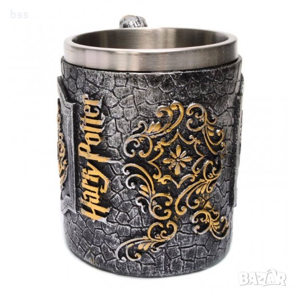 Метална чаша с мотиви от филма "Harry Potter" Стилна чаша от полирезин и метал с релефни декорации -