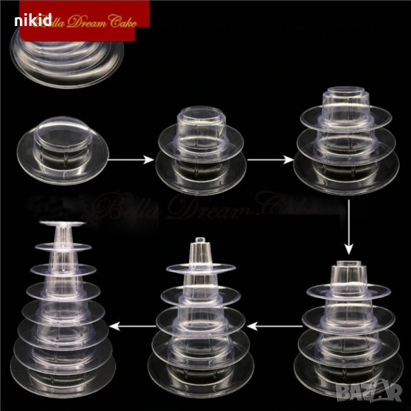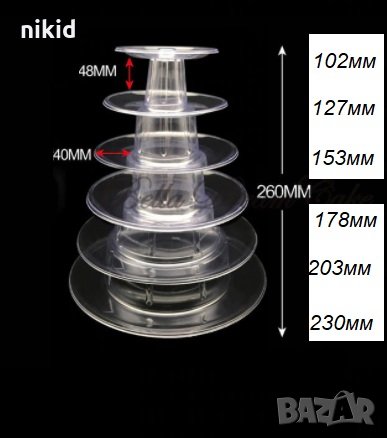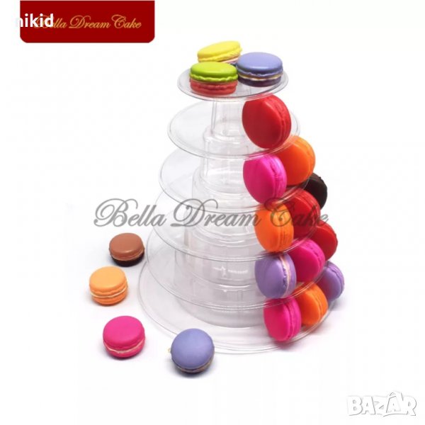 6 етажна пластмасова стойка поставка форма за сладки макарон макарони на етажи сладки → Обява 29947541