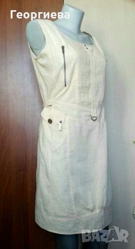 Представям ви една много хубава рокля, която е идеална за ежедневието и за разходка!Моделът е интересен, но и доста практичен, предвид многото джобове.Роклята е изцяло с памучна подплата и не прозира изобщо.При талията е свободна и се регулира с коланчето, което може да се завързва, както отзад, така и отпред.Роклята миже да се носи и с блуза, или боди.Цветът е светло бежов - много приятен и благодатен за комбинация с различни добавки!По етикет е М, но е уголемена и по-скоро отговаря на M/L и L р-р.
