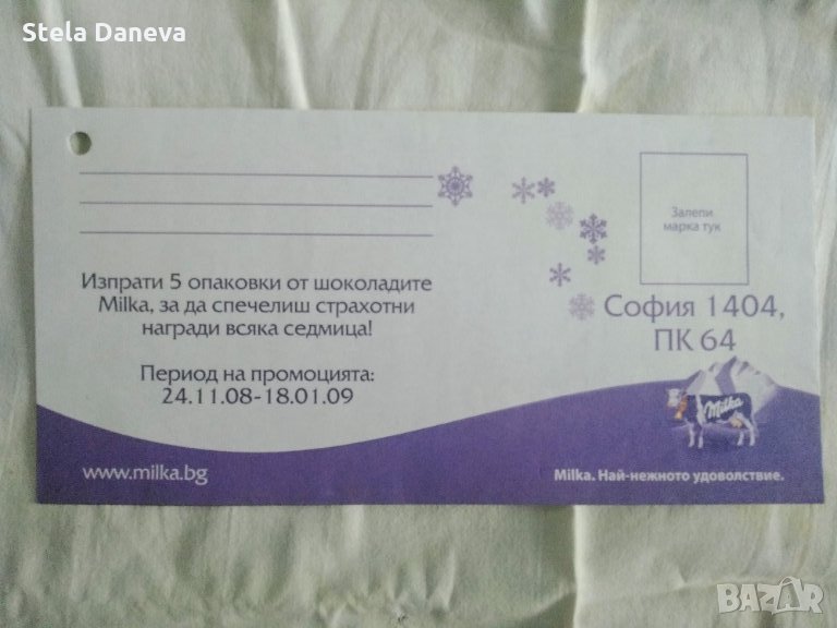 За колекционери! плик за писма и стикери "Милка" → Обява 29950085