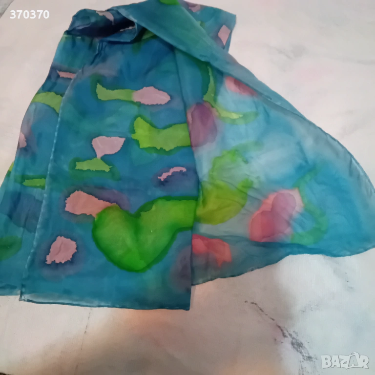 5. Дамски квадратен шал от воал на флорални мотиви прозрачен.