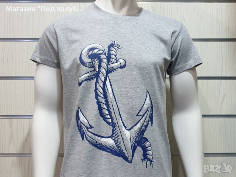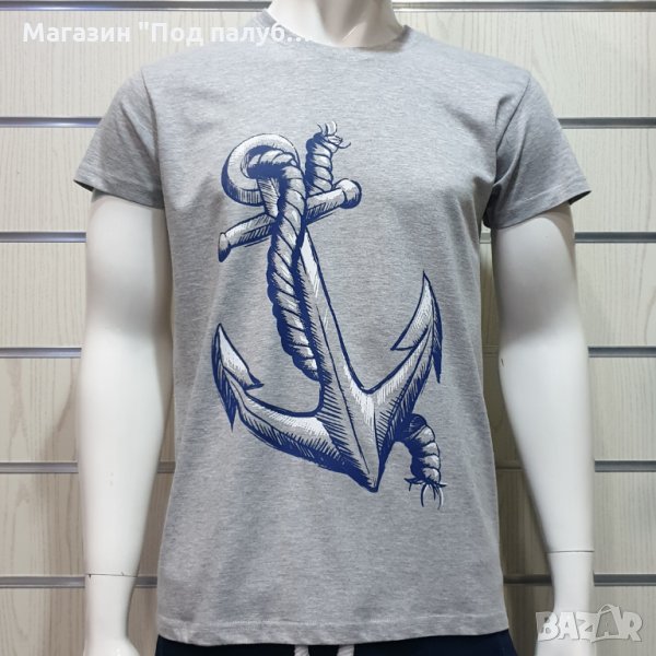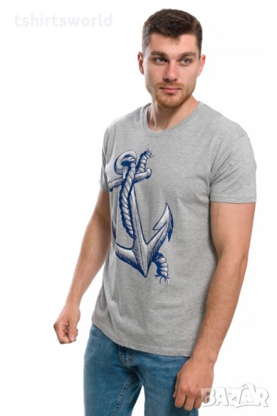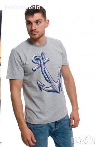 Нова мъжка сива тениска с трансферен печат Голяма котва, морска