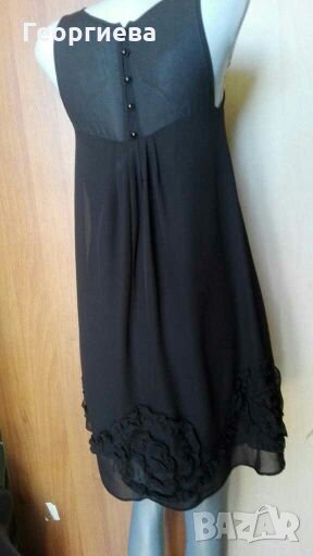 Нова рокличка в черен цвят, с подплата.Има красив бордюр от цветя.Много нежна и красива на живо!Материята е полиестер, има подплата с еластичност.
