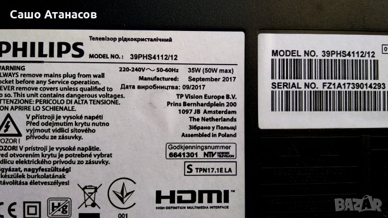 PHILIPS 39PHS4112/12 със счупена матрица ( TPT390U2-TA2A0.Q )