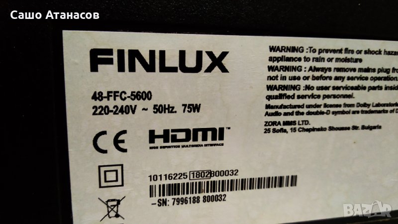FINLUX 48-FFC-5600 със счупена матрица ,17MB211S ,17IPS12 ,17WFM07 ,VES480UNDS-2D-N12 ,17LD160