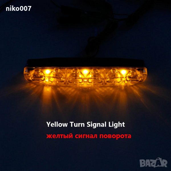 Дневна светлина (бяла светлина) + светлина за мигач (жълта светлина)