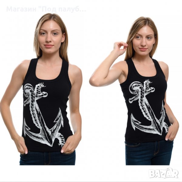 Страхотен нов черен дамски потник с трансферен печат Голяма котва, Морски, U-образно деколте и Х-гръб или прав гръб. Произведен в България под марката PRINTEX от висококачествен 100% памук. Леката и удобна материя е гарант за прохлада и комфорт в горещите летни дни, а вталена му кройка го прави подходящ както за спорт, така и за ежедневно носене с дънкови панталони. Потникът е с професионално изработен висококачествен трансферен печат, устойчив на пране с години и може да се пере при температура до 40 градуса. Спокойно можем да гарантираме за качеството на изработката и ярките цветове на дизайна.