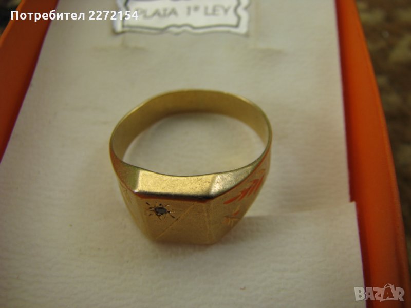 Пръстенът е ръчно изработен от 18 карата злато.Брилянта му е тип "люспа"-0,022 карата,само той самостоятелно струва НАД 200лв.Аз го таксувам за 100лв.Вътрешният диаметър на пръстена е 17мм,тежи в 18кт 2,53гр,обърнат в 14кт е 3,25гр.