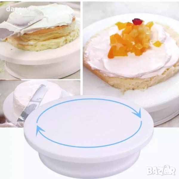 Тази работна въртяща се стойка е идеална за декориране и украса на торти, сладкиши, пайове. С нея лесно оформяте всеки пай или плодова пита. Здрава и лека, със своята повдигната платформа предлага лесен достъп за декориране от всички страни.