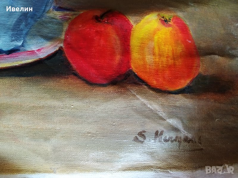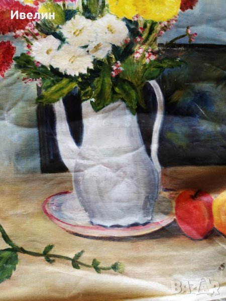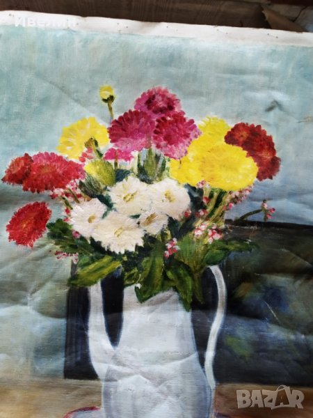 картина-цветя.масло на платн о.размери на рисуваната част 50см/57см.състояние видно на снимките.