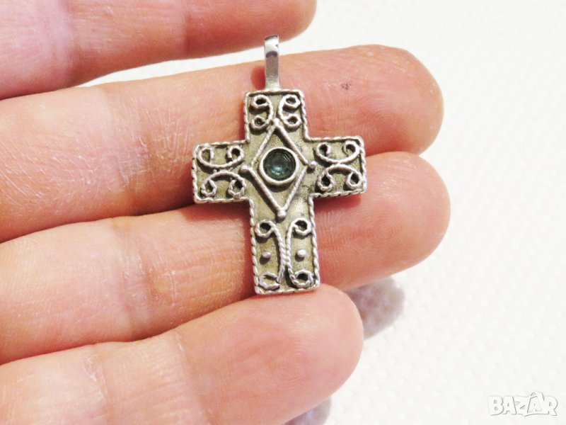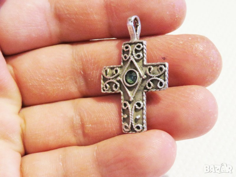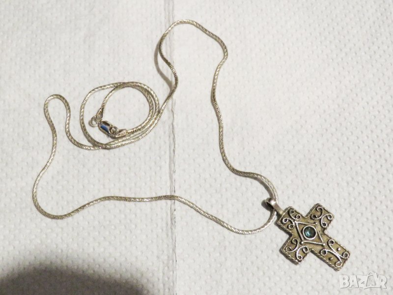 сребърен кръст с синджирче , православен кръст с филигран и скъпоценен камък сребро
