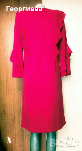 Много елегантна червена рокля, подходяща за офиса, или за повод.Кройката е със свободни талия и ханш, като при ханша леко се разширява.Материята е плътна и има еластичност.Роклята е перфектна за сезона и е чисто нова.