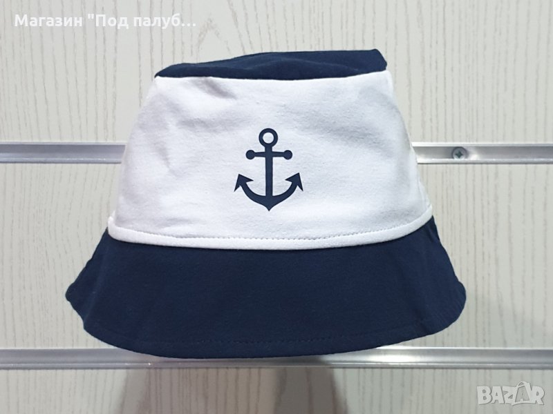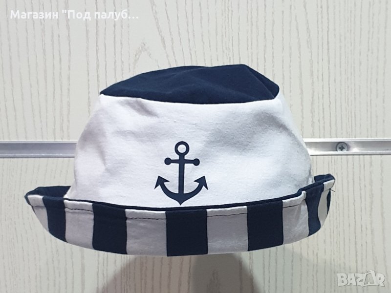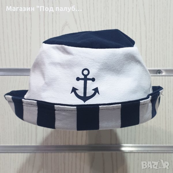 Страхотна нова детска моряшка шапка-идиотка на тъмносиньо и бяло райе с малък траснферен печат отпред котва, подходяща за момичета и момчета. Може да се носи и подгъната. Шапката е произведена в България под марката PRINTEX от 100% памук. Подходяща за носене както в летните дни на плажа, така и за ежедневно носене. Марката PRINTEX от години се слави със своите висококачествени моряшки дрехи.