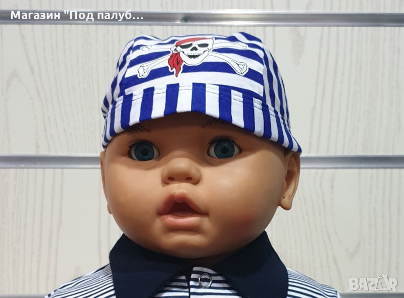 Страхотен нов бебешки/детски бандан (кърпа за глава) на класическо синьо и бяло райе с трансферен печат Череп пират, завързващ се отзад. Изработен в България под марката PRINTEX от висококачествен 100% памук, който запазва цялостта на материята и наситеността на цветовете дълго време. Може да се пере при температура до 40 градуса в пералня. Спокойно можем да гарантираме за качеството на изработката и ярките цветове на дизайна.