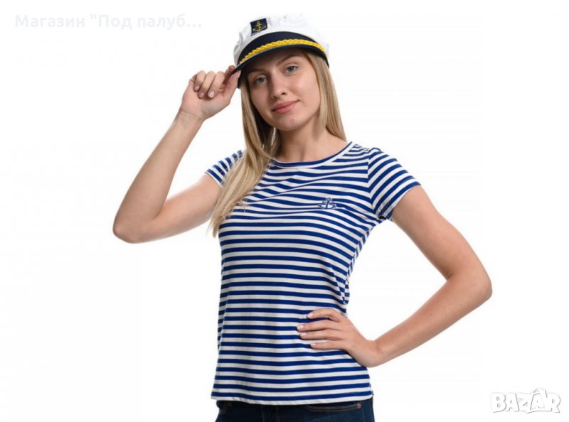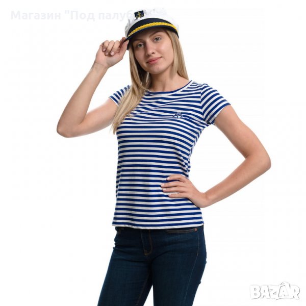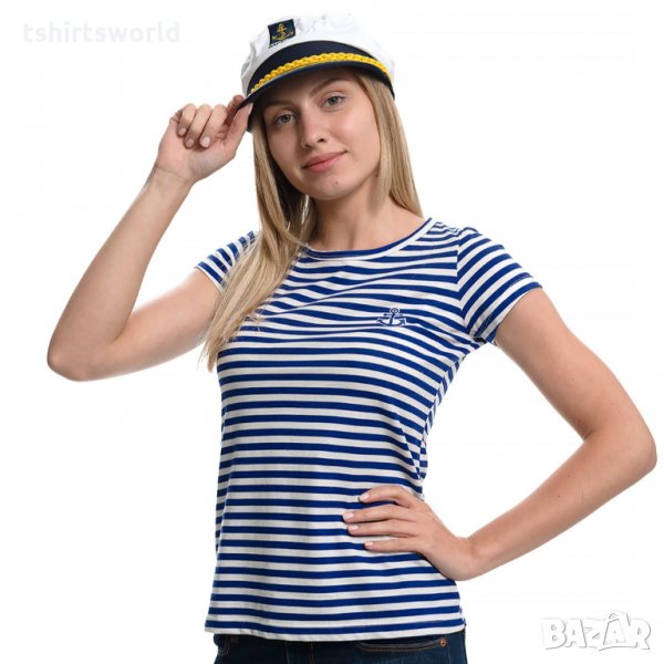 Страхотен нов дамски моряшки сет, включващ дамска моряшка тениска и капитанска шапка