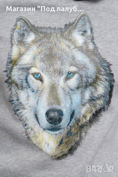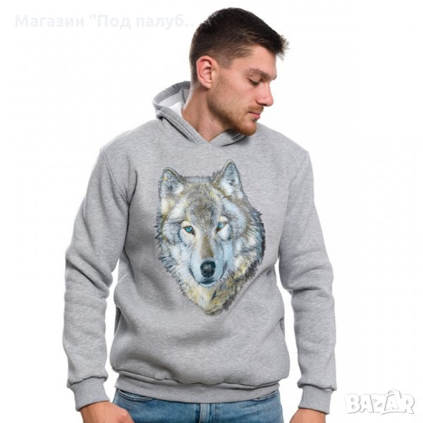 Нов мъжки сив суичър с трансферен печат Вълк със сини очи, Серия вълци