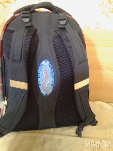 Отдолу кората е твърда, за да издържа тежките учебници, отзад е ортопедично гръбче с регулиращи се презрамки.
