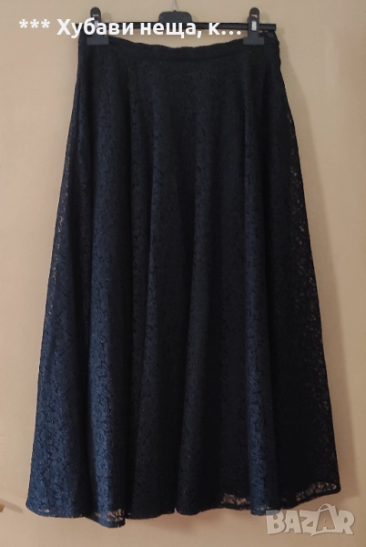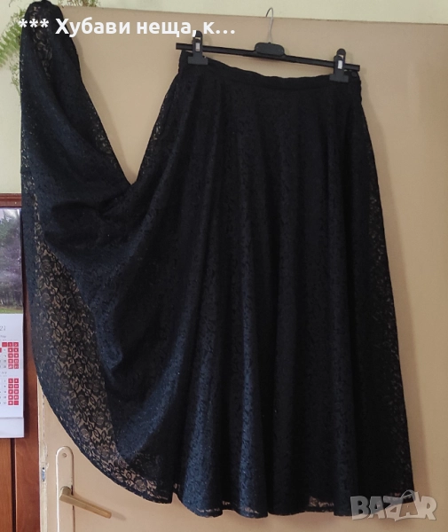 Красива пола от фигурирана дантела. Пълен клош е и поради това ще стане само по мярката на талията. Пада тежко и богато надолу. Пере се и не се глади. Подходяща за празници и танци но добре съчетана може да се носи и в ежедневието.