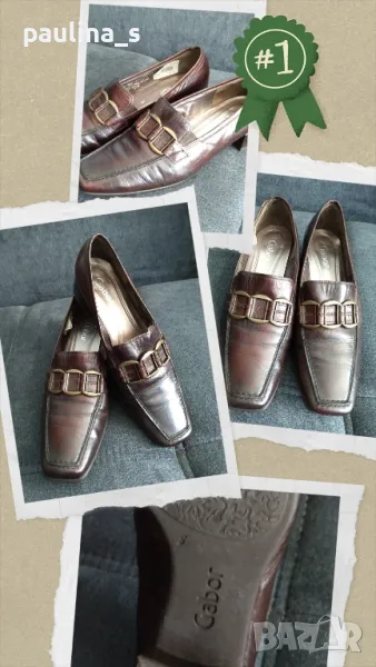 1️⃣. Колаж / Кафяви обувки "Gabor" N38. Естествена крокодилски принт / дамски елегантни обувки. Има излющване на салона отвътре, макар да е обозначена естествена кожа, съобразена цена 34,99лв. Стелка 25,5см