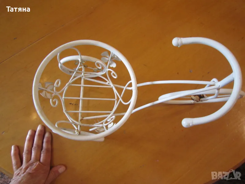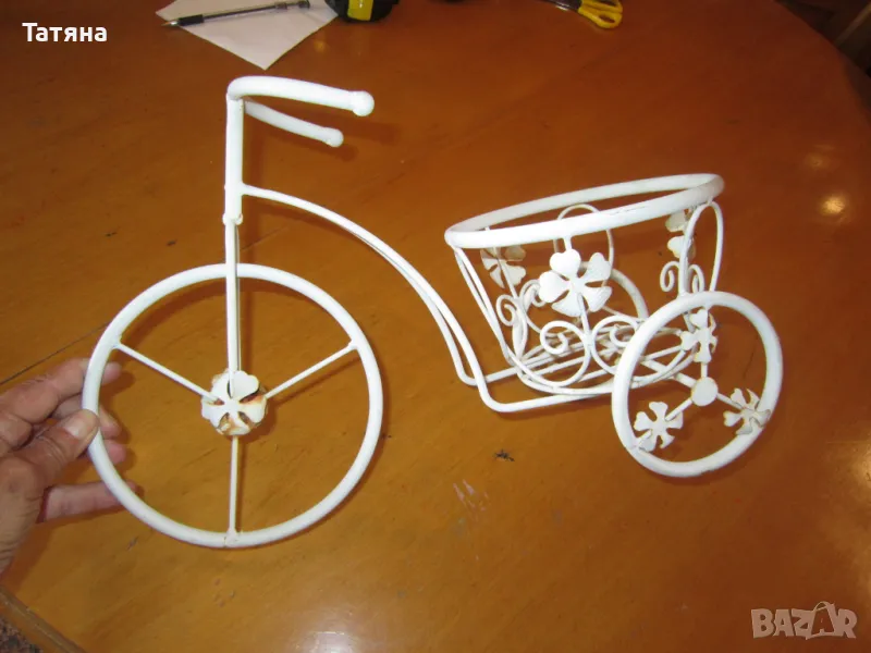 Количка за цветя -дължина -40см; височина -25см; диаметър кошница -16см ,предно колело -16см ;задни колела -10см ЦЕНА -18 €