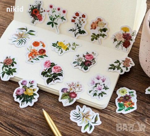 45 бр цветя самозалепващи лепенки стикери за украса декор картонена торта ръчна → Обява 30004858
