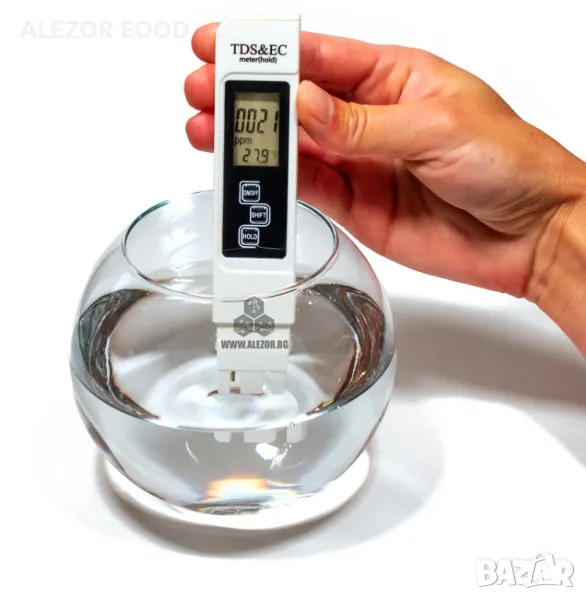 Общата минерализация на водата, измерена в mg/l от 0 до 9999 ppm. Ако показанията са 300ppm - разтворените във водата вещества са 3мг/л.