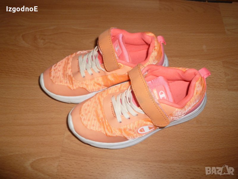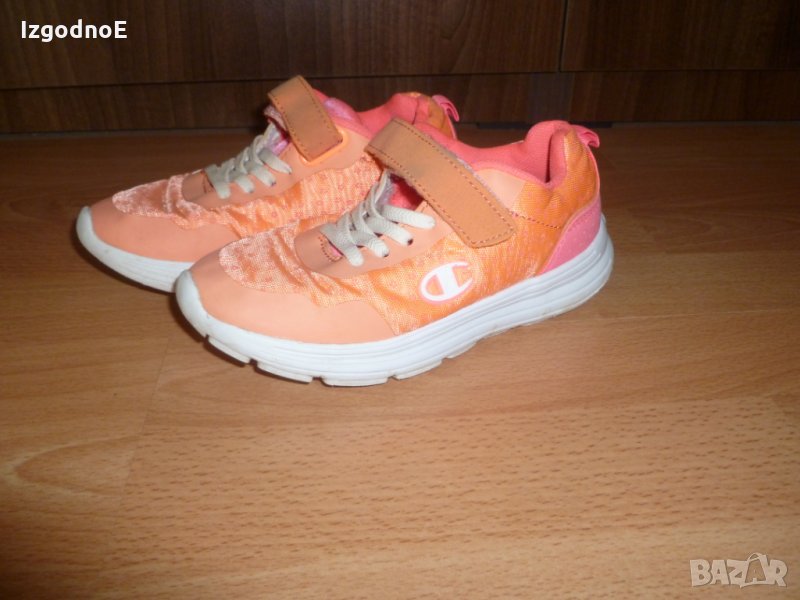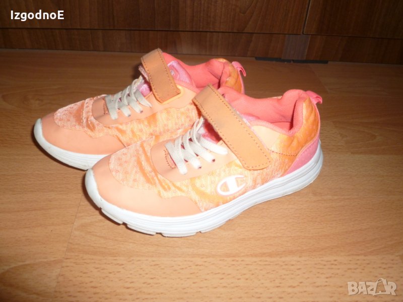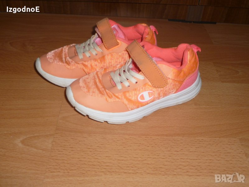 Маратонки на Champion - н31 - 19см стелка. Носени месец, поръчах ги по интернет, без да знам, че маратонките на тази марка са умалени и още като дойдоха едва ни станаха, но малката много ги хареса и реши да ги носи. След месец, заяви, че много и стискат и не може повече да ги обува. Летен модел, неоново оранжево и розово. Ако може да се каже като забележка, отпред тази като гумирана лента леко се е надигнала, но този тип маратонки така стават още при първите обувания, няма друга забележка, напълно здрави - 20лв