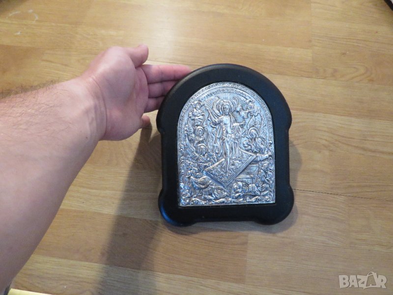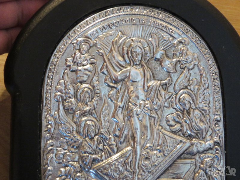 Старинна сребърна икона - ВЪЗКРЕСЕНИЕТО НА ХРИСТОС - За да ви пази и закриля нашия спасител - Стар внос от Гърция - сребро 999