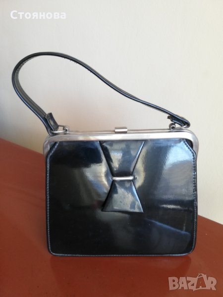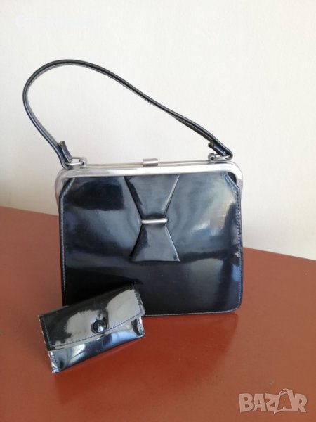 Стара малка черна чанта от лак с портмоне → Обява 30017957