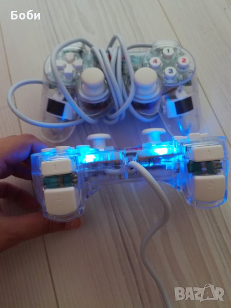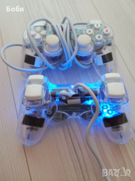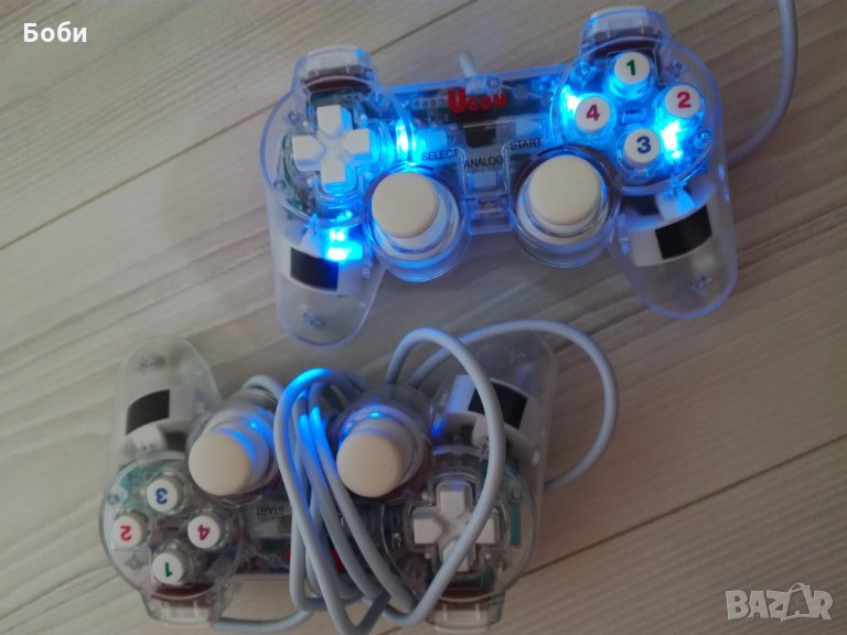 Чисто нови джойстици два броя.В перфектно състояние, без абсолютно никакви забележки,работят безотказно.Светят в син цвят,прозрачни.Цената е за брой.