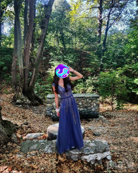 Уникална рокля с камъни, цветът е междо лилаво и синьо, прекрасна рокля, в която всички се влюбиха, подходяща за абитуриенска, кумска, рожден ден или др. Ваш специален повод!