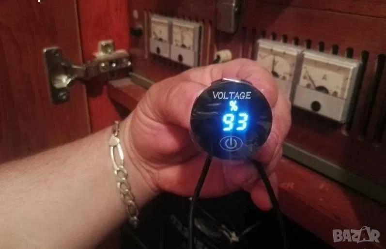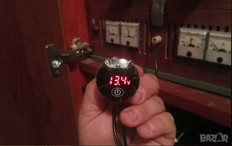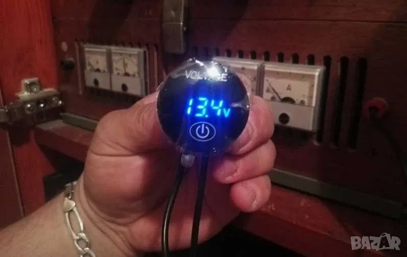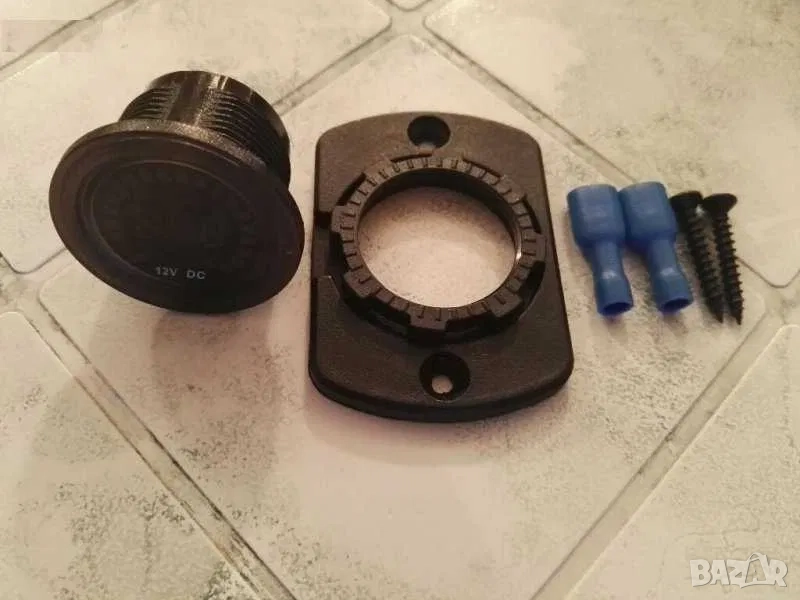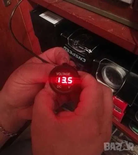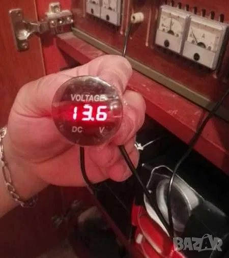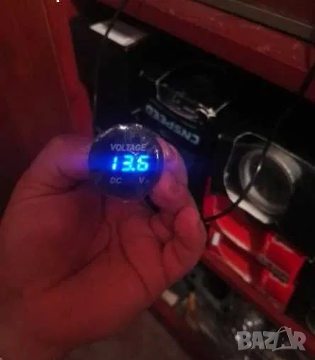 2.Нов дигитален волтметър. Показва какво напрежение зарежда алтернатора и състоянието на акумулатора при загасен двигател. Мери в диапазон от 6V до 30V (волта). Работи на 12V и 24V (волта). Връзва се към контактен плюс. Диаметъра на показващия уред е 37мм, дълбочина 15мм. Комплектът включва 2бр. кабелни обувки и волтметър. Намира широко приложение в лодки, каравани, кемпери, АТВ, УТВ, автомобили, камиони и мотоциклети. Цветен дисплей! На гърба на волтметъра има пластмасова гайка, която позволява на уреда да се стегне към стойка, табло или плоскост.