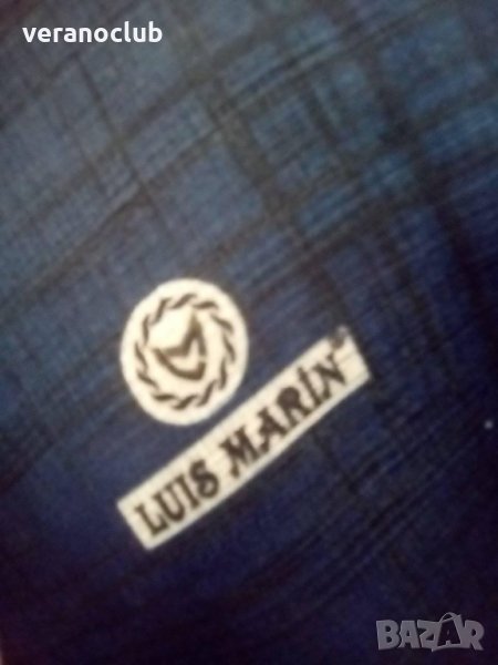 Елегантен преливащ шал с лого от компанията Луис Марин. Шалът е в есенни тонове, преливащи до тъмносиньо.