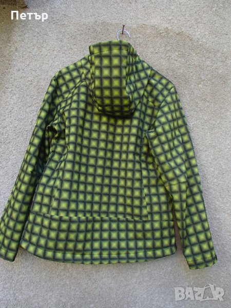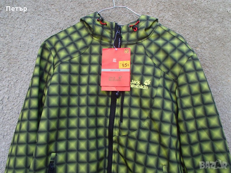 Продавам ново дамско зелено яке софт шел Jack Wolfskin. Има размери. Има три предни джоба с цип и два вътрешни без цип. Качулката не се откача. Материалът е сандвич от тънък полар, мембрана и външен слой разтеглив и незадържащ влага. Циповете са YKK.