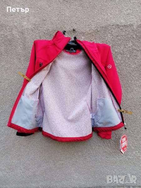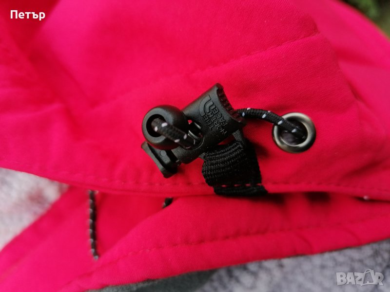 Продавам ново дамско червено яке софт шел The North Face. Има два предни джоба и два вътрешни без ципове. Качулката се откача. Платът е изграден от тънък полар отвътре+водоустойчива мембрана+външен разтеглив слой. Мембраната е водоустойчива.