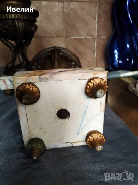 две барокови декорации за каминен часовник.мраморна основа с размери 11см/11см.метални декорации.високи са 31см.цената е за двете.