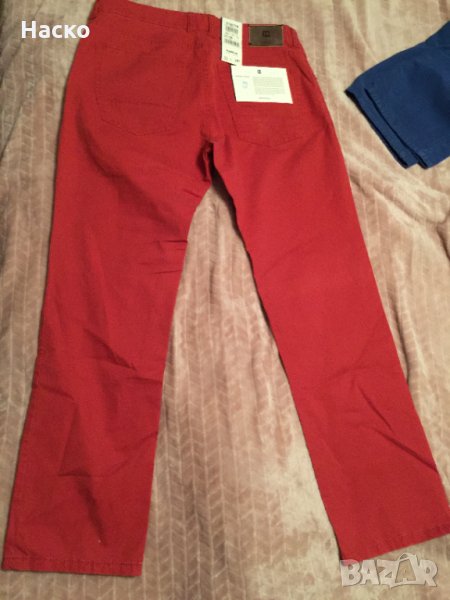 1. Летен червен панталон Хатрик 98 процента памук и 2 процента еластан, материята се разтяга леко.Размер 30/33 талия 85 см, цена на етикета 60 евро, дава се за 30лв