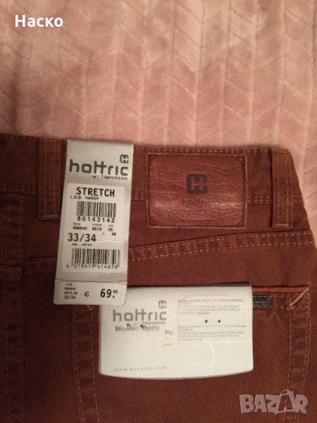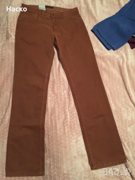 2.Кафяв панталон пак на същата марка по дебел плат 98 проценат памук и 2 процента еластан също леко разтеглив. Размер 33/34 талия 85см етикетна цена 70 евро дава се за 30лв има няколко съвсем незабележими петна под единият заден джоб ,снимани са , не се забелязват при носене