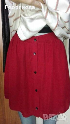 Страхотен комплект, състоящ се от нов, с етикет дамски топ и нова, без хартиен етикет пола с подплата, цвят бордо.Състава на платовете е сниман.Дрехите са от много приятни на допир и качествени материи!