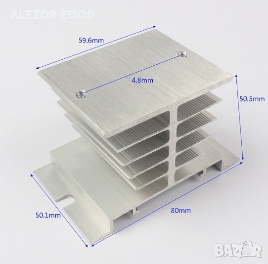 Алуминиев радиатор за разсейване на топлона отделяна от SSR релета. Препоръчително е използването на термо - контактна паста за по - добро топлоотдаване.