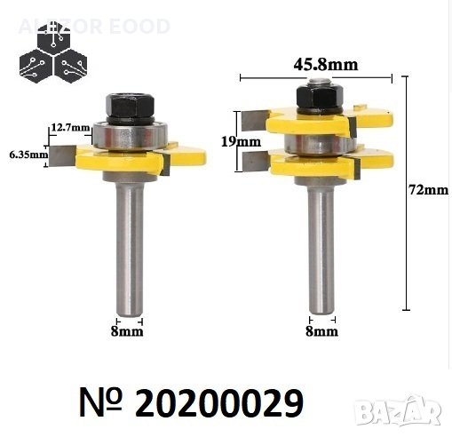 Фрезери За Дърво Нут - Перо Комплект, За Детайл До 19мм, Захващане 8мм, 20200029