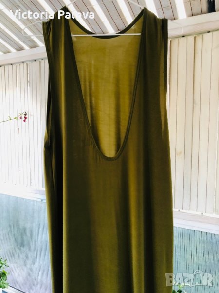 Красива и удобна,”студена”рокля,има разтегливост,материята е cupro,тънка,има копринен блясък.гръдната обиколка е 47-48см,но може и повече,има голяма еластичност,талия-47-48см,ханш-50см,цялата дължина е 143-145 см(може да се отреже без да се подгъва).на роклята е посочен размер 36,но може да пасне и на 38.