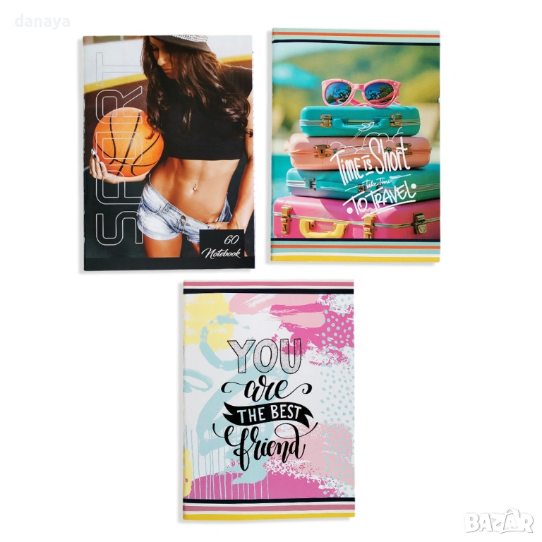 Тетрадка А4 формат, с полета в черен цвят. Тетрадката е с широки редове, с бяла офсетова хартия. Красиви гланцирани картонени корици в различни варианти. Чудесна за ученици и студенти. 60 листа.