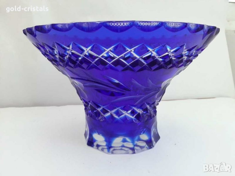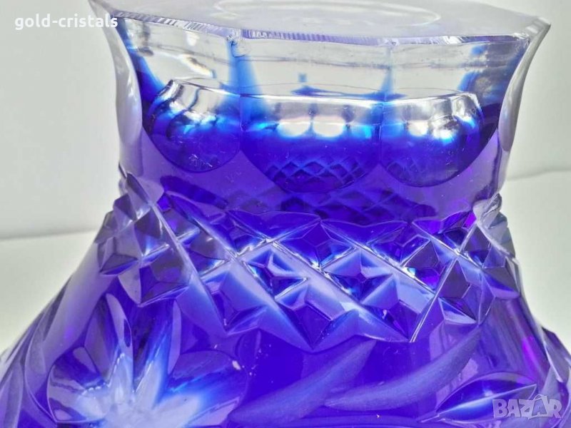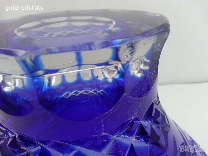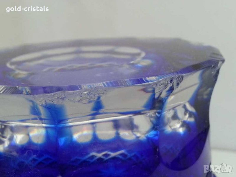 Стара кристална купа син кристал цветен гравиран кристал кобалт забележка на дъното-110лв и втора без забележки 390лв сервиз комплект сет лот ретро арт декор винтидж колекция