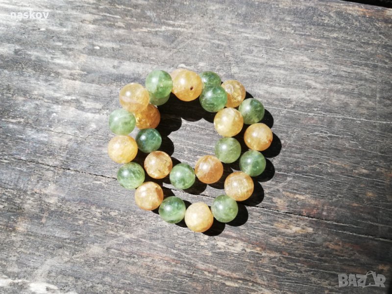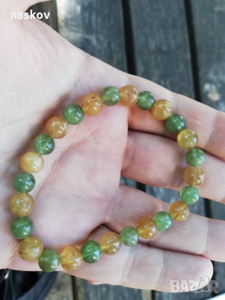 Гривна от Златист и зелен Апатит (Снимки 1, 2, 3, 4, 5) - дебелина 8 мм, дължина 19 см. Цена: 120 лв;