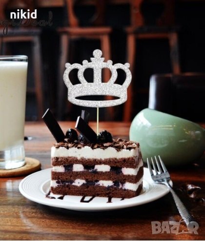 10 бр корона корони брокатен картон злато сребро топери украса декор мъфини кексчета → Обява 30075384