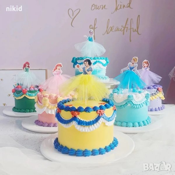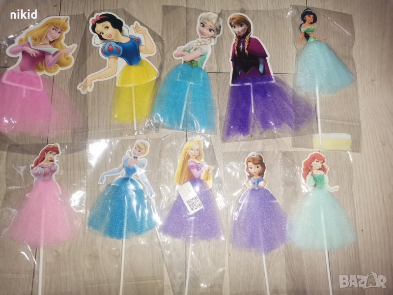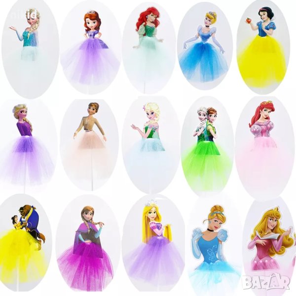 Принцеса Ариел Пепеляшка Снежанка София Елза с тюл пола топер клечка украса декор торта мъфини → Обява 30075481