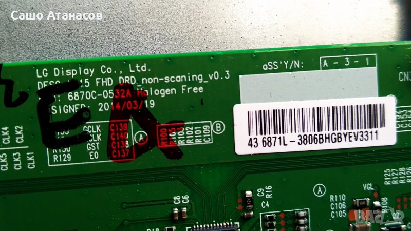 T-Con Board: V15 FHD DRD_non-scaning_v0.3 ( 6870C-0532A Halogen Free / 6871L-3806B ) - 40лв.